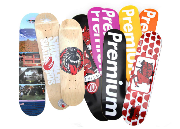 デッキは、各メーカーにより様々なグラフィック、形状、製法など違いがありますが、スケボーを乗り物として考えるとまず重要なのは〝使う人に合ったサイズ選び〟という事になります。グラフィックやブランドで選ぶ事もとても大切ですが、上達を求める人は足のサイズや体全体のバランス、やりたい方向性などを考えて購入する事がとても大切です。グラフィックは各ブランドの顔であり表情とお考え下さい。